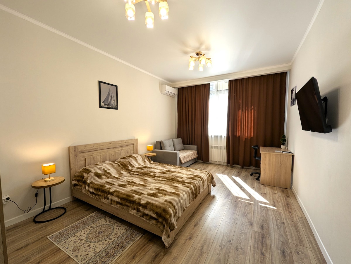 Que tengas una buena estancia en nuestro precioso estudio. Acogedor y funcional estudio en la ciudad de Almaty para 2-4 personas. Se admiten bebés y niños. El alojamiento entero recién reformado tiene todo lo necesario para que tu estancia sea cómoda. El apartamento tiene cocina totalmente equipada, wifi y todas las comodidades necesarias. El apartamento está situado junto al gran centro comercial con una gran variedad de restaurantes, cafeterías y un supermercado. La calle principal City Walking está a 10 minutos a pie.