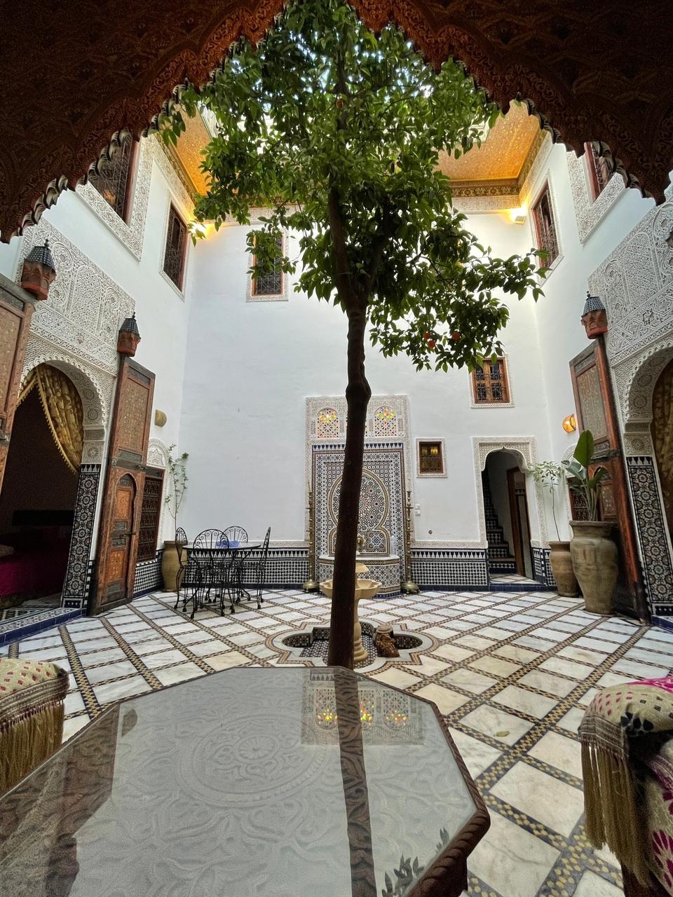 Es un lugar ideal para la luna de miel, reuniones familiares, descubrir la medina de Fez, entre libros y música, bajo y sobre el arte. Te encantará estar aquí. El lujo del lugar, la sencillez de las cosas, sentirás la armonía entre el sonido del agua y el canto de los pájaros. Probarás la famosa cocina marroquí y la cultura y tradiciones medievales. Cerca del aparcamiento Ainazliten, en la popular zona de Talaa Kebira, estarás en el corazón de la medina. De nada. Adil te espera.