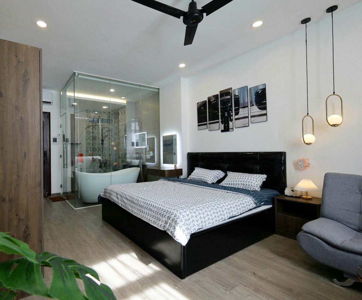 Está ubicado en el piso alto de un edificio de apartamentos de lujo en el Distrito 1, Ciudad Ho Chi Minh. Organicé los muebles y tomé fotos del departamento yo mismo. Con una superficie de 90 m2, el departamento está situado cerca de Bui Vien, el mercado de Ben Thanh y la calle peatonal Nguyen Hue. Ubicación conveniente para llegar a todas las atracciones y destinos turísticos de la ciudad. Cuando te quedes con nosotros, tendrás acceso a los mejores servicios TOTALMENTE GRATIS: - PISCINA INFINITA EN EL PISO SUPERIOR DEL EDIFICIO - Gimnasio moderno - SALA DE SAUNA - PARQUE INFANTIL.