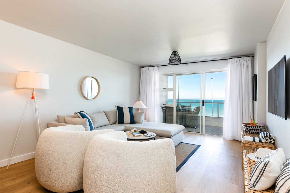 Bienvenido a nuestro alojamiento familiar y elegante ubicado en el centro de la hermosa playa de Melkbosstrand. Al entrar en nuestra acogedora morada, te recibirán con impresionantes vistas panorámicas del océano infinito, la arena blanca prístina y la costa serena. Este exclusivo refugio es la combinación perfecta de diseño moderno, cálida hospitalidad y fácil acceso. La sala de estar de planta abierta está diseñada para reunir a familias y amigos, con una generosa sala de estar con lujosos sofás y un gran televisor de pantalla plana.