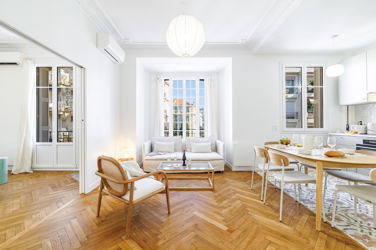 Apartamento estudio recién reformado en un edificio histórico y tradicional de Niza construido en 1834, donde el famoso artista francés Henri Matisse vivió y pintó varias obras maestras como La bahía de Niza en 1918. Fantástica vista panorámica al mar desde el balcón. Playa y salón Beau Rivage a la vuelta de la esquina. A solo unos minutos a pie del corazón de la ciudad, el casco antiguo (genial de día y de noche), muchos restaurantes y zonas comerciales. Acogedor y luminoso, ya que el apartamento está orientado al sur. Habitación de 32 m2 (344 pies cuadrados)