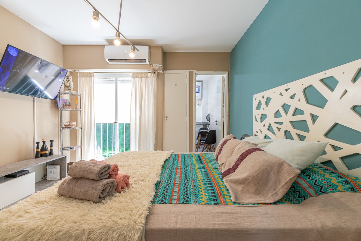 Loft luminoso y muy funcional para 2 o 3 personas en la mejor zona de Palermo y a 2 cuadras del subte. Amplio balcón, lavarropas y secarropas, aire acondicionado y todo completamente equipado para asegurar que tengas la mejor experiencia. Very luminous and functional Loft for 2 to 3 people at the heart of Palermo and 2 blocks away from the subway. Large balcony, washing and drying machines, AC, fully equipped for you to have the best experiencie possible.