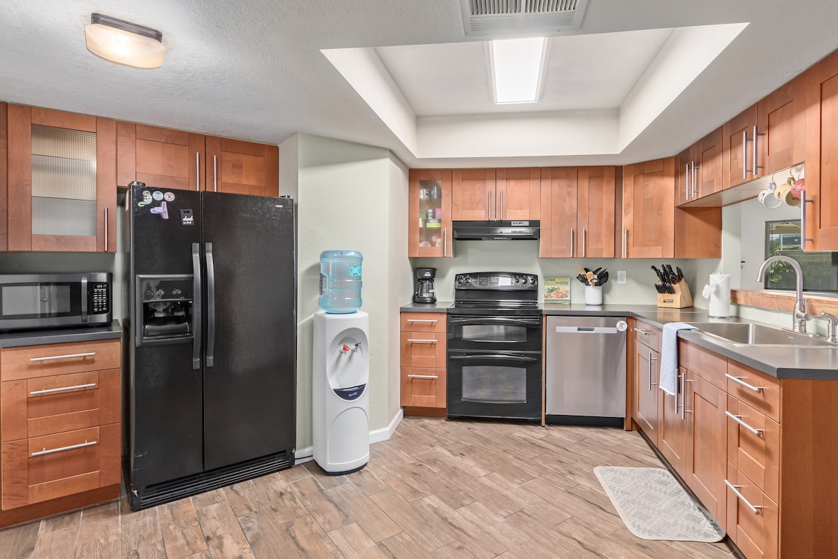Muy moderna y la casa está mejorada al máximo. La casa tiene 1700 pies cuadrados, 3 dormitorios, 2 baños con bar al aire libre, piscina y spa. La piscina no está climatizada, pero el spa lo compensa con creces. La casa se encuentra en una zona preciosa, hay un parque comunitario y canchas de baloncesto. El dormitorio principal tiene una cama tamaño king y los otros dormitorios tienen camas tamaño queen. La autopista está a aproximadamente 1 milla de distancia. Los centros comerciales y restaurantes también están dentro de un radio de 1-2 millas. Todo lo que necesitas está ahí, lo que es muy práctico.