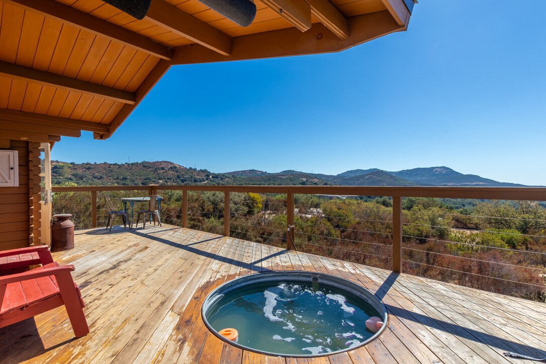 Kick back and relax in this private cabin on 9 acre ranch. It’s a true get away. Come enjoy all the amenities including: Queen bed, full kitchen/bath, spa shower, 9 acres of private trails, intentional spaces, majestic views and a huge deck with a soaking tub to cool you in the summer (June - October). New A/C and heating. Enjoy a 5 minute walk to Milagro Winery and return to Littlepage for the amazing sunset. Or venture 15 minutes to the towns of Ramona, Julian or San Ysabel. Book Now!