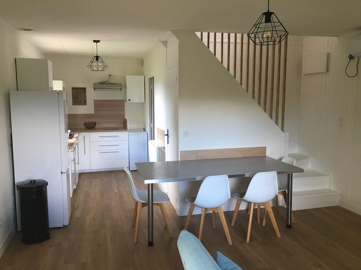 Relájese en este alojamiento tranquilo y elegante , totalmente equipado. (Llegada autónoma) Se proporciona un hidropedal para pequeños paseos por el río. 1 habitación (pareja) cuarto de baño, aseo arriba. 1 televisión. Cocina/Sala de estar en la planta baja. Sofá convertible (niños, adultos). 1 televisor Terraza para disfrutar del sol, relajarse... Superficie total de 57 m2.