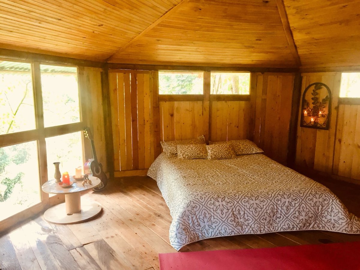 La cabaña Colibrí esta elaborada con materiales reciclados, cuenta con baño seco rústico, la cabaña es sin electricidad, a la luz del fuego de la chimenea, esta pensada para personas amantes de la naturaleza y que urgen por descanso y paz. Un lugar perfecto para cambiar de ambiente, calmar el estrés de la cuidad y reconectarse consigo mismo, puedes refugiarte en un entorno lleno de naturaleza, aves, rio y tranquilidad Puedes hacer yoga, pintar, caminar, escribir. hamaca, fogata y naturaleza.