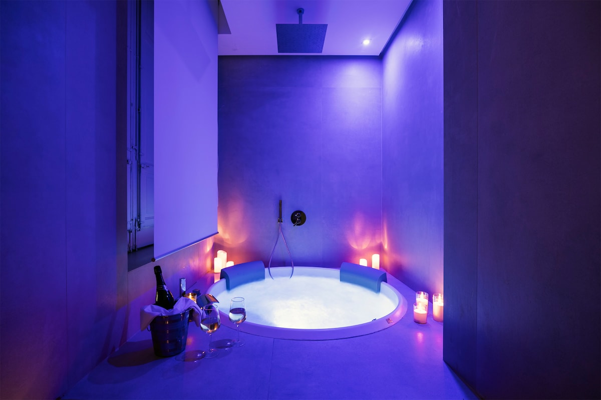 Suite con vasca idromassaggio & Sauna, con bagno privato . Parcheggio libero sulla strada o privato a pagamento. La camera è dotata di una Tv led, appendi abiti, comodino, un applique, un HOTSPOT WI-FI personale in camera, aria condizionata, infissi a taglio termico in legno, un posto letto con rete ortopedica e materasso in Memory Foam con guanciale in Memory.