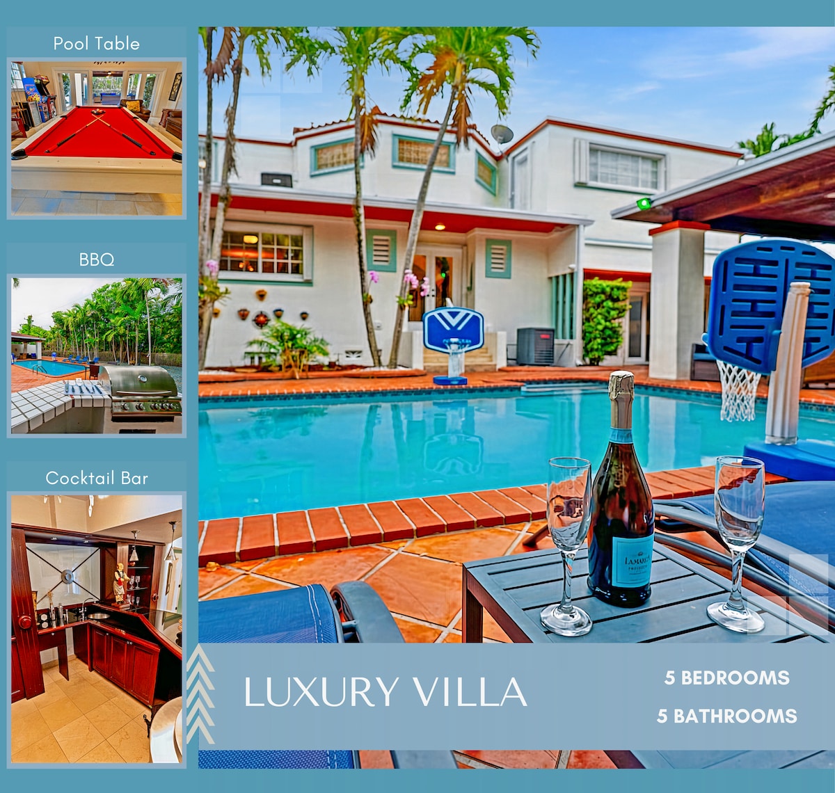 Villa en Miami con piscina climatizada y juegos en ubicación céntrica