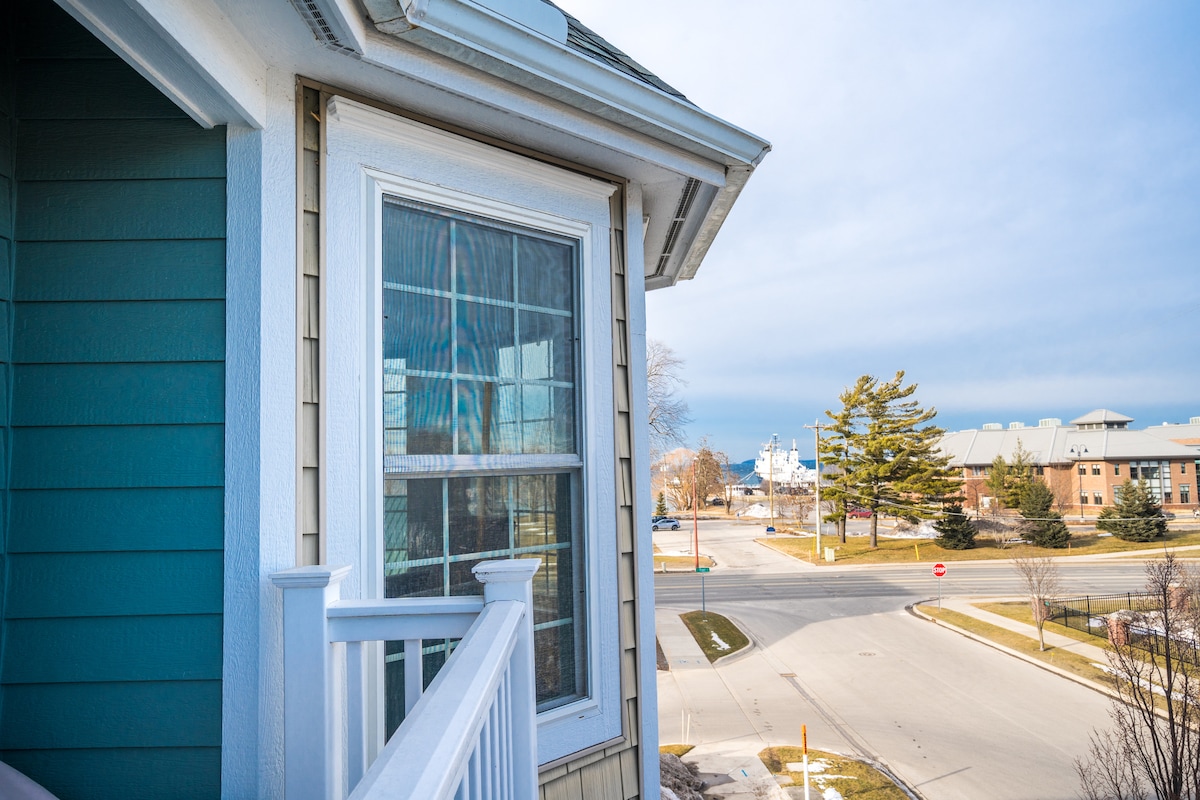 Rejuvenece en este acogedor apartamento de 1 dormitorio con 10 jacuzzis para 2 personas en la azotea. Situado a las afueras del centro de Traverse City, estarás cerca de playas (a menos de 1 milla), senderos y la vida del centro. Una vez que entres por la puerta, te sentirás encantado por la carpintería hecha a mano y los toques únicos que tus anfitriones locales han preparado para ti. Esta tranquila unidad de esquina cuenta con techos altos y ventanas de gran tamaño, lo que da una sensación de amplitud. El espacio es perfecto para 2 personas con una cama tamaño king, pero acogedor para 4 con el sofá cama.