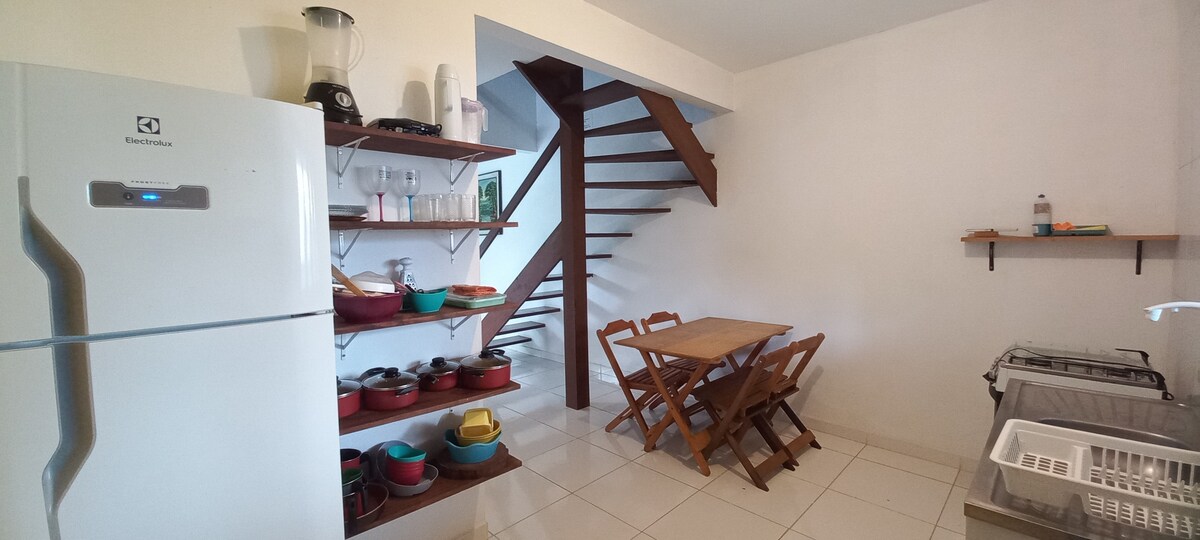 Condominio en la arena de la playa con bosque, 2 zonas de barbacoa, ducha frente a la entrada de la playa. Supermercado grande enfrente, restaurante kilo, farmacia, heladerías, panadería y comercios alrededor. Apartamento con garaje privado, sala de estar y comedor, ventilador, cocina, área de servicio y baño. En el segundo piso, 2 dormitorios con ventiladores y baño completo. Todo equipado y con Smart TV de 32 pulgadas de pantalla plana. Kayak de 2 plazas (no tenemos chalecos salvavidas). VOLTAJE 220 V.