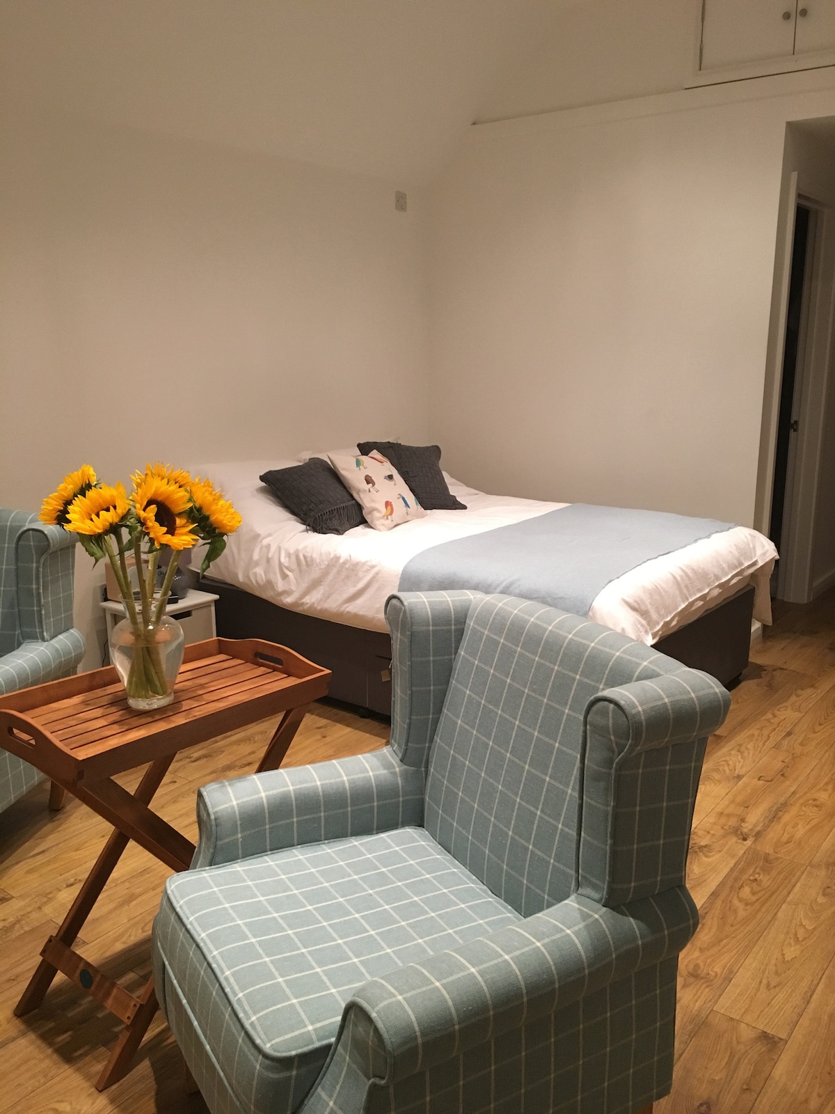 Una conversión de garaje independiente de un dormitorio totalmente amueblada con cocina/comedor totalmente equipado, salón independiente, dormitorio y baño moderno, jardín privado cerrado, entrada y plaza de aparcamiento. Situado en una ubicación tranquila con impresionantes vistas a la campiña circundante. El jardín privado tiene amplios muebles para dos personas con una mesa de pícnic para comer, barbacoa con carbón, chimenea y luces para las noches de verano. Exeter está cerca de resorts costeros, del Parque Nacional de Dartmoor y de mucho más.