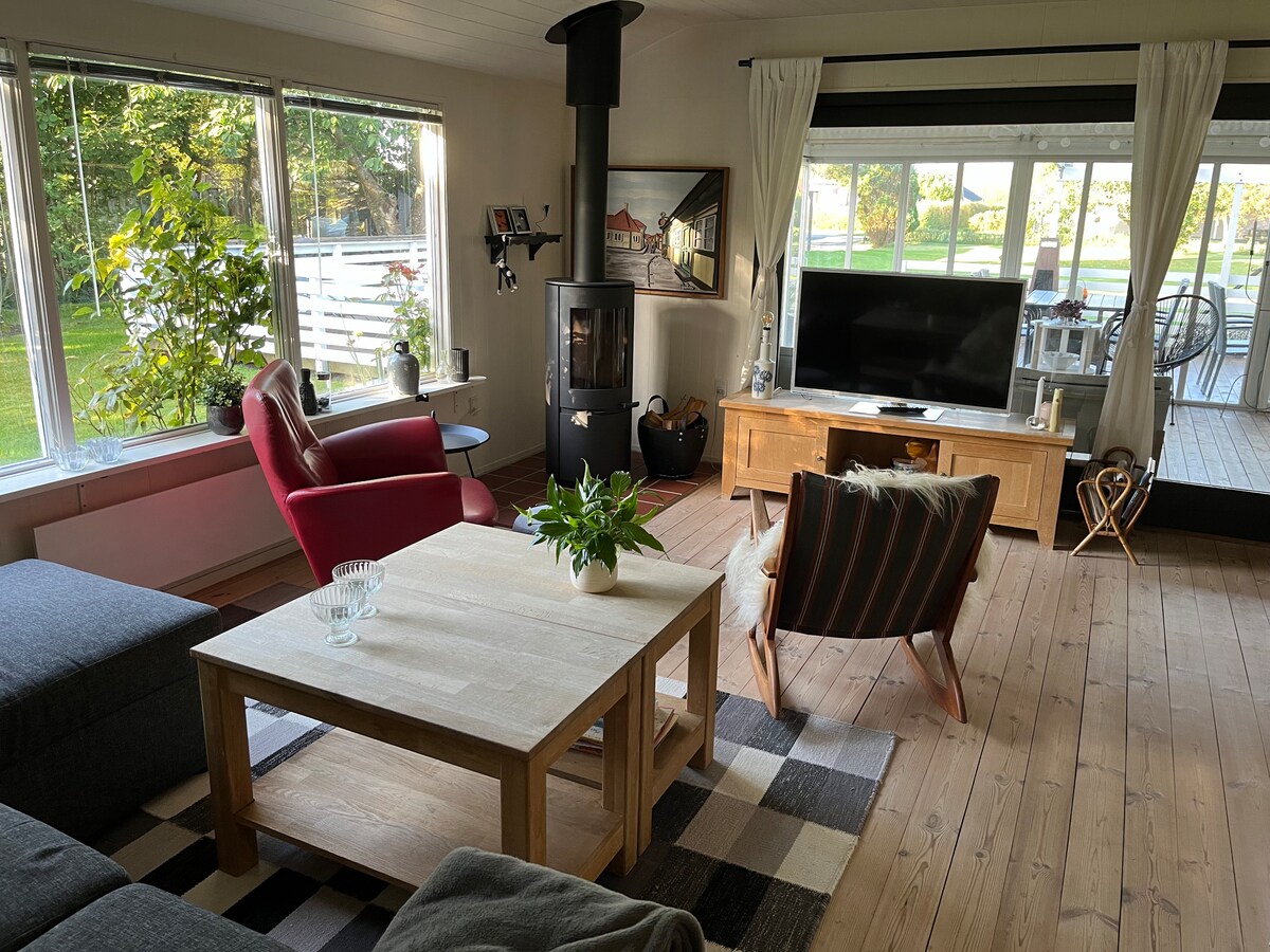 ¡Casa de troncos! ¡Vi una cabaña/casa de verano real donde irradia la comodidad de la abuela! No hay televisión ni internet, pero sí muchos libros y juegos. (Hay una buena conexión 5G y 4G.) Es acogedor cuando la estufa de leña está encendida, la casa también se puede calentar con la bomba de calor, la calefacción se puede iniciar antes de la llegada. Con 200 metros hasta Fønsvig, donde hay una playa de baño, así como un pequeño muelle de baño donde puedes darte un chapuzón matutino. Si te gusta pescar, puedes salir y pescar truchas de mar, así como otras especies de peces.