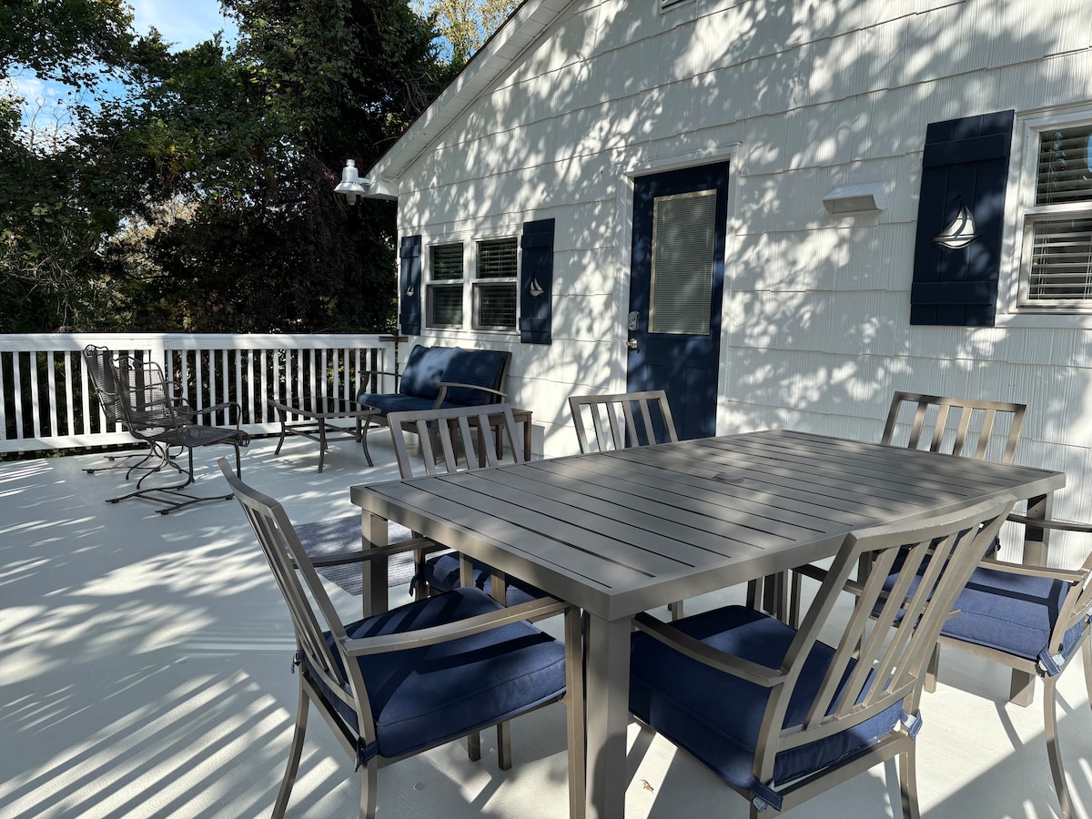 Guest House in tranquil West Cape May. Close to dining, shopping and beaches. The Guest House is situated behind the owner’s home on a large double lot. Three Queen bedrooms and three baths. Small dining table inside, and large dining table on outdoor patio. Newer Smart TV in living room. Second TV in a 2nd-floor bedroom for a USB streaming device. Owners live in the front house and are happy to provide recommendations on area attractions and dining. Sorry, no pets or smoking allowed.