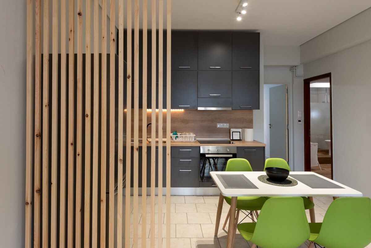 Un maravilloso, acogedor y cómodo estudio semisótano (dormitorio, sala de estar, cocina, baño, oficina) en uno de los vecindarios más hermosos de Larissa. Cuenta con calefacción individual de gas natural y está amueblado y equipado con todas las comodidades modernas (TV por cable, Internet 100 Mbps, etc.). Vale la pena señalar que todos los muebles y electrodomésticos son nuevos y fueron elegidos con pasión exclusivamente para satisfacer las necesidades y requisitos de los visitantes de Airbnb. ¡Será un placer ofrecerte una estancia agradable!