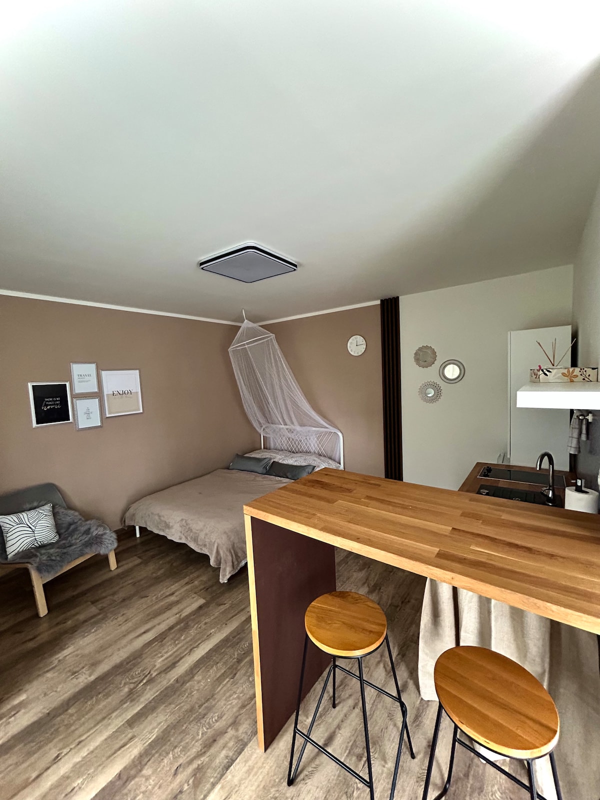 This historic building is located 3 km from the popular and busy Lednice, making it the perfect location for those who appreciate peace and quiet. You'll be surrounded by greenery, horses and beautiful views. Sleeps ideally 2, will fit up to 2 adults with a baby in a travel cot.