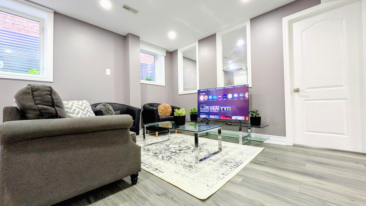 Bienvenido a nuestro espacioso apartamento sótano de 2 dormitorios y 1 baño recién renovado con cocina completa. Wifi de alta velocidad ilimitado y fuerte. Tenemos un televisor de pantalla plana con Google Chromecast para que puedas ver y transmitir desde tu teléfono inteligente/computadora portátil. Cerca de LCBO (5 minutos a pie), NoFrills (5 minutos a pie) y del aeropuerto Pearson (15-20 minutos en coche). La propiedad está en el límite entre Brampton y Mississauga en la intersección de Steeles Avenue y Mavis Road.