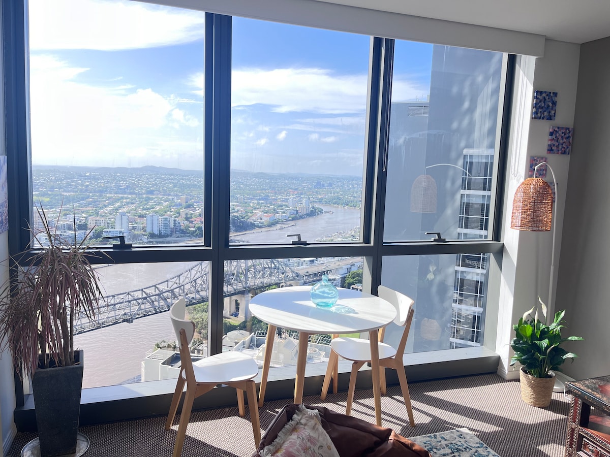 Mi apartamento se encuentra en el nivel 26, elevándose sobre la ciudad con vistas ininterrumpidas de 180° de nuestro hermoso río Brisbane desde la sala de estar. Cuidadosamente decorado y cuidadosamente mantenido limpio y ordenado, este apartamento puede ser tu base ideal para explorar y disfrutar de la cultural South Brisbane y el CBD. El edificio está convenientemente ubicado. La biblioteca estatal, el museo y el QPAC están literalmente a la vuelta de la esquina. A pocos pasos de la ciudad de Brisbane, South Bank y West End.