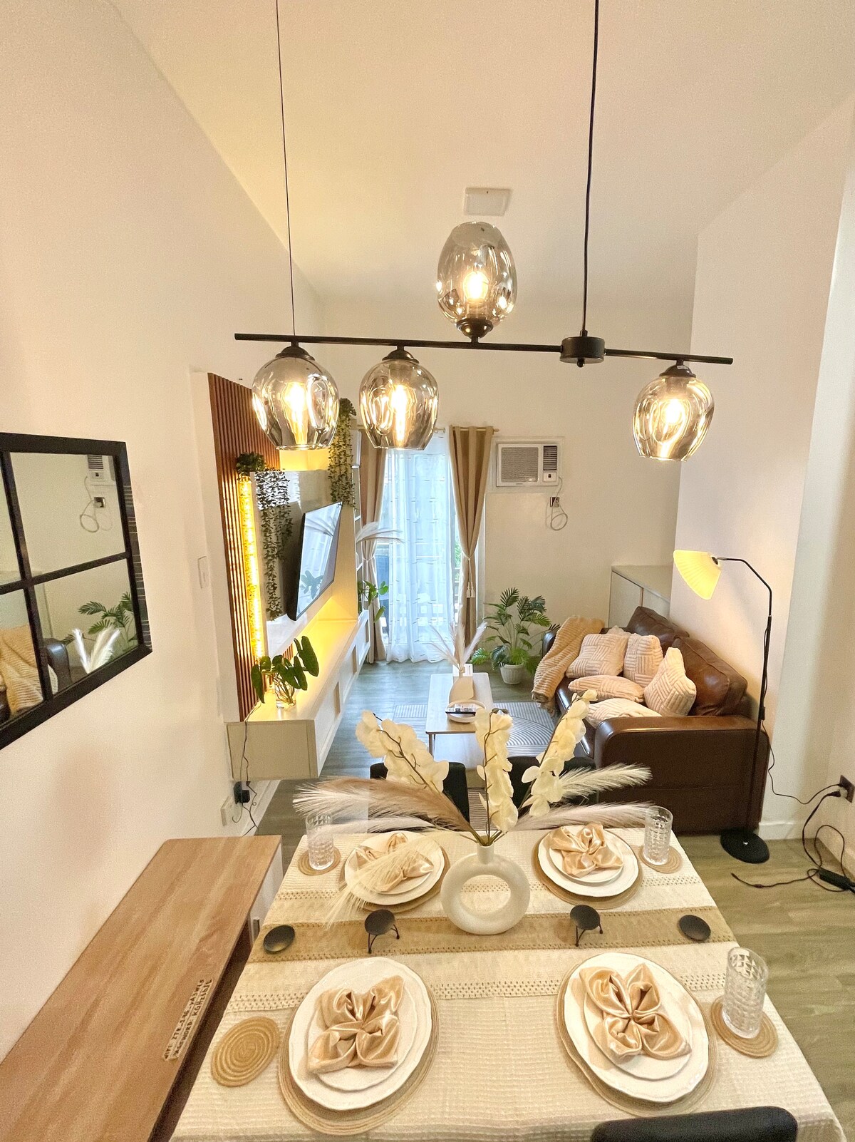 Forget your worries in this spacious and serene space. Our place is equipped with Air-conditioned, Shower Heater, smart TV with Netflix, High-speed WIFI, Fridge, Microwave, Induction Stove and kitchenwares, Kettle and Rice Cooker. The property has a coffee shop, convenience store, laundry shop, water refilling station, car wash, fitness center, study center/ workspace, beauty sallon, and a basketball court. It is also near to shopping mall and supermarket.