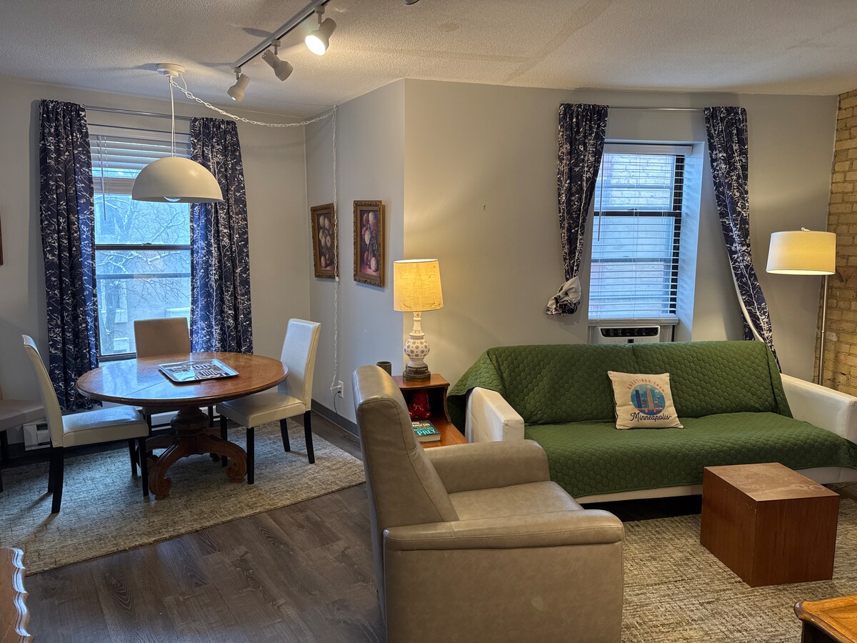 This is a charming historic unit with french doors and a non-working fireplace with lots of natural light. The unit is nicely furnished and ideal for up to four guests. The unit is on the second floor of a Victorian home built in 1903. LOCATION: The apartment is just 1.3 mi from U.S. Bank Stadium, walking distance to downtown and minutes away from the Minneapolis Institute of Art. Convenient bus lines run to Uptown, LynLake and, U of M campus. Coffee shops and Eat Street are close-by, as well.