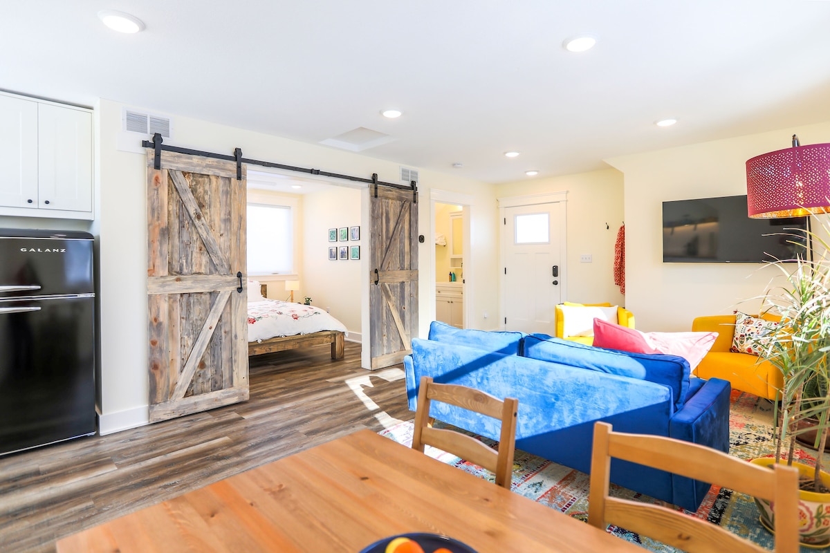 Nivel superior de un dúplex en una ubicación privilegiada en el sur de Mineápolis. Este espacio acogedor y limpio incluye una cama tamaño king detrás de puertas francesas. Totalmente equipado con tu propia cocina, café tostado localmente y, por supuesto, ¡Netflix! Cómoda llegada autónoma. A poca distancia del aeropuerto, del centro comercial Mall of America, del estadio US Bank Stadium, de las cataratas Minnehaha Falls, de cervecerías y a poca distancia a pie del tren ligero, de cafeterías, de restaurantes y de un cine de una sola pantalla de los años 50.