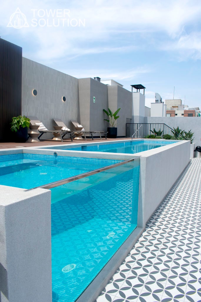 Piscina en la azotea de un increíble loft con vistas a Barranco y gimnasio