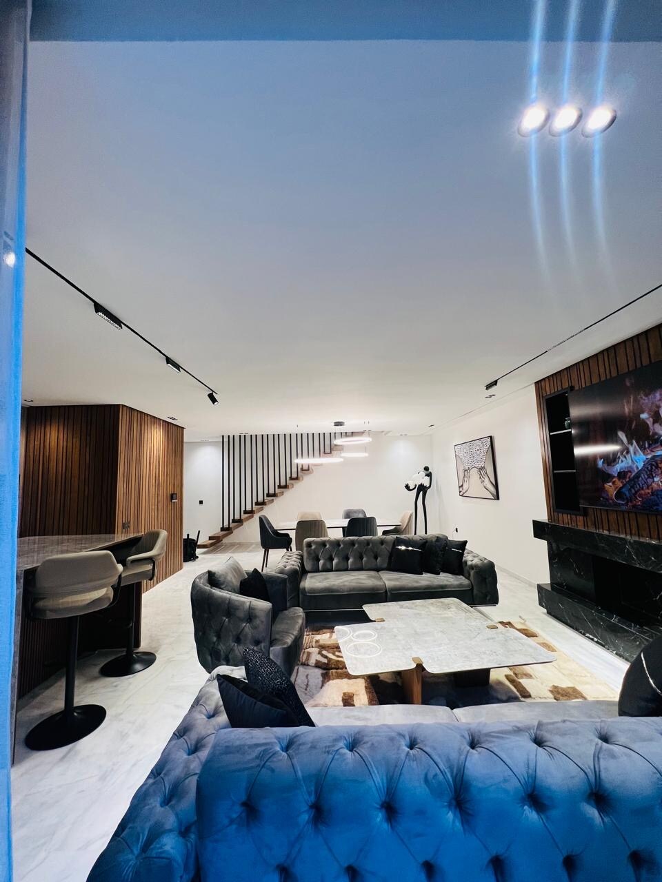 Amplio y lujoso apartamento moderno de 140 m2 con un toque artesanal de Marrakech que supervisa el centro de la ciudad. El condominio se encuentra a pocos pasos de todo lo que el centro de Marrakech tiene para ofrecer, los taxis están disponibles en todo momento. El edificio está asegurado 24 horas al día 7 días a la semana. Disponemos de conexión wifi a Internet de fibra de alta velocidad. *** Ahora hemos instalado puertas de patio con cristales dobles en los dormitorios para reducir el ruido exterior ***