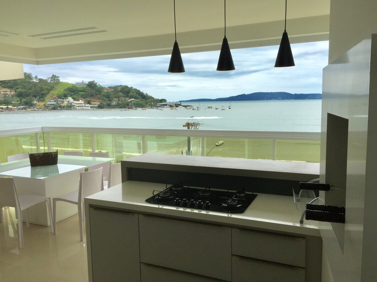 Apartamento de alta calidad, directamente en el mar, 1 por planta, de los cuales: - Master Suite: Cama King, Aire, Gabinetes, Cortina Eléctrica,Jacuzzi, Ducha de Gas - Sala de televisión: Sky, Wi-Fi, cocina gourmet con aire, barbacoa eléctrica, campana, nevera, microondas, horno eléctrico y lavavajillas. - Lavabo - Lavandería: Tanque, Armarios - Garaje: 2 coches En el mejor y más tranquilo punto de Itapema , te vas a despertar con el ruido del mar. - 49 km de Beto Carrero World - 10 Km Balneário Camboriú - 10 Km Outlet Premium