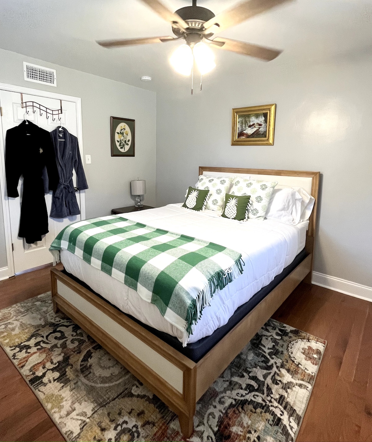 Nuestra casa de campo con entrada privada es una unidad independiente de un dormitorio y baño con una pequeña cocina con microondas, cafetera, tostadora, nevera pequeña, platos, vasos y utensilios de cocina. Hay una cama de matrimonio, SmartTV, sofá de dos plazas y espacio de escritorio para ordenador. Maravillosa terraza trasera para disfrutar de las tardes soleadas o de los cócteles nocturnos. Entrada privada con entrada sin llave. Aparcamiento en la calle con iluminación de seguridad en un maravilloso barrio para pasear. Unidad de propietarios anexa al frente de la propiedad.