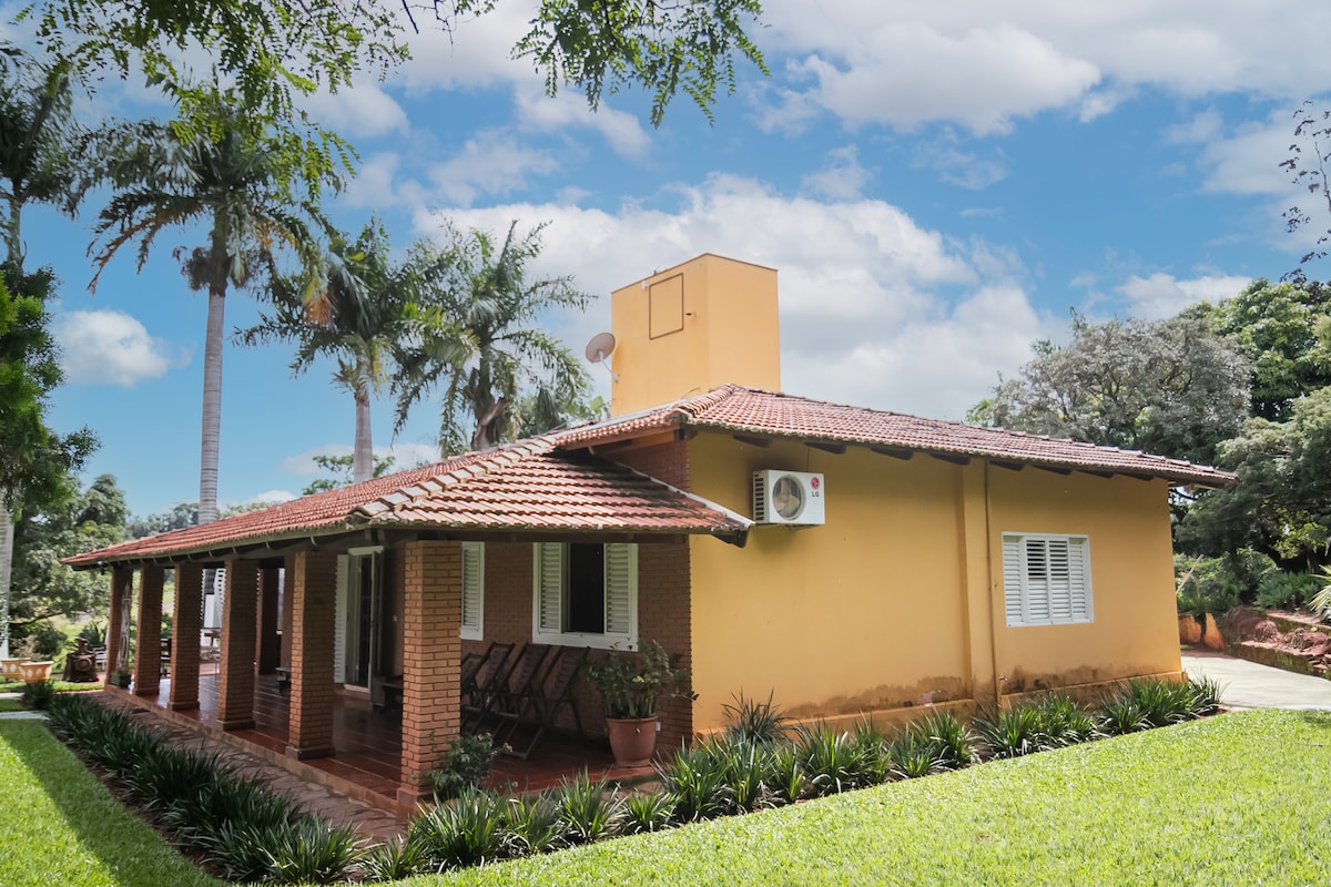 Юcara súper cómodo con mosquiteros protectores en las ventanas y puertas de insectos, ideal para aquellos que buscan tranquilidad y naturaleza. Se encuentra a 11 km de la ciudad. Tenemos TV de pago, WI-FI, ventiladores de techo y cochera cubierta para 3 autos. En el lado de la piscina, estamos construyendo un área de ocio, pero no interfiere con el uso de la granja o la piscina.