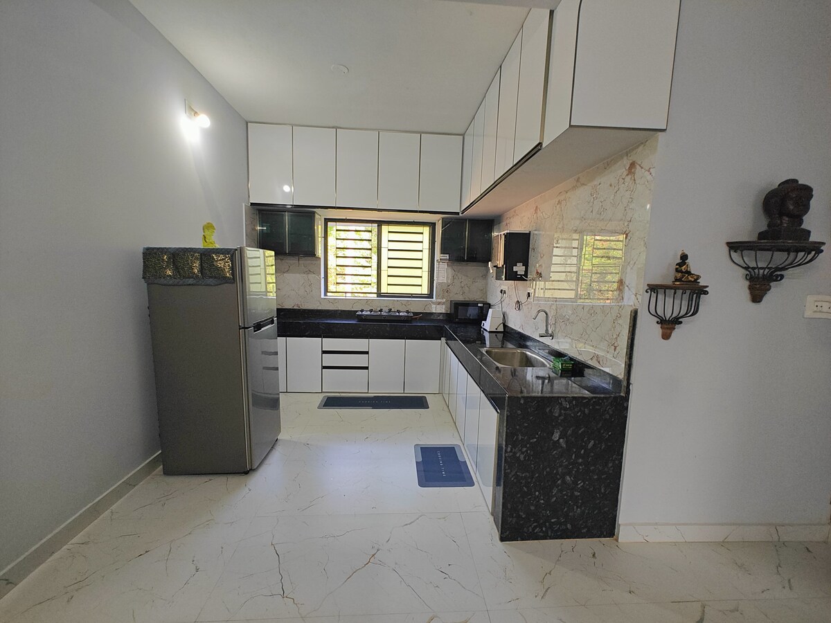 ¡Escápate a nuestro alojamiento premium de 3 habitaciones y 1 baño en Kanhangad, a solo 17 minutos del Fuerte de Bekal! 🏖️ Lo más destacado: una sala multimedia con aire acondicionado y un sistema de cine en casa Sony para disfrutar de la mejor noche de cine. 3 dormitorios con aire acondicionado y sin aire acondicionado, y baños modernos. Elegante sala de estar de doble altura y cocina abierta. Balcón privado y patio reservado. Entrada 100 % privada para tu tranquilidad. ¡Ideal para familias que buscan un alojamiento de primera calidad y espacioso cerca de la costa!