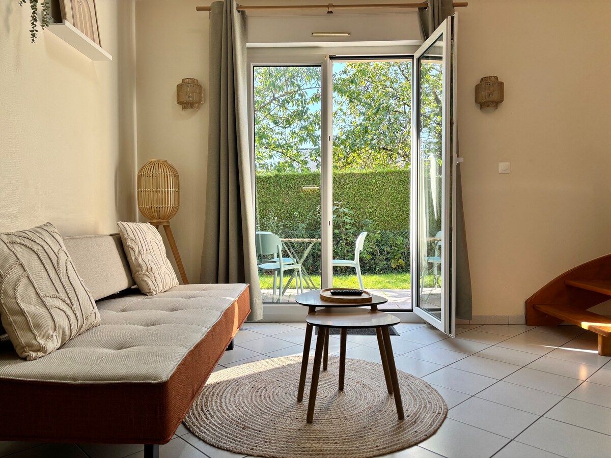 "Le boudoir", bonito estudio independiente con una cuidada decoración en la planta baja de una casa renovada del siglo XVI. Nuestra propiedad, en el centro del pueblo. Se encuentra a 20 minutos del centro de Le Mans y a 10 minutos de la autovía. Quedará seducido por el encanto y la tranquilidad del lugar y estaremos encantados de recibirle en la convivencia. Podrá disfrutar de los exteriores, se ponen a su disposición mesas. No dude en ponerse en contacto con nosotros para obtener más información.