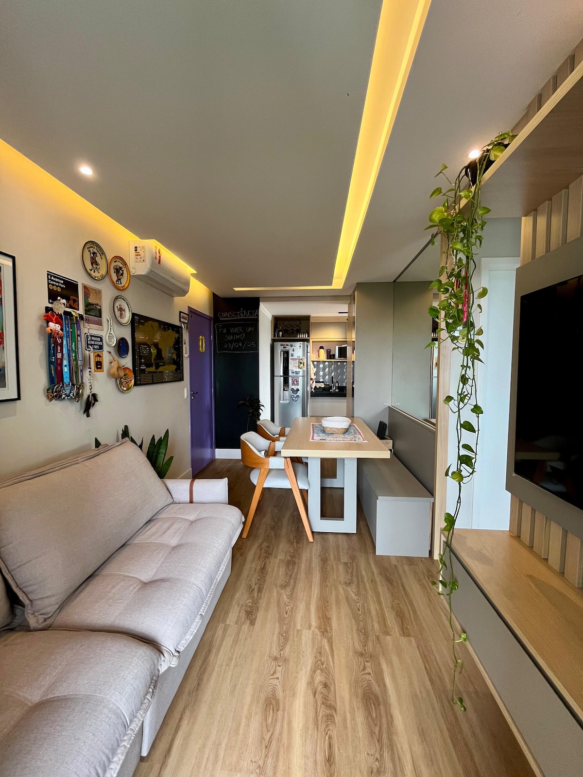 - 1 lugar de estacionamiento en el garaje / edificio con ascensor. - A 500 metros de las tiendas del centro/cerca de Chopp 40/Panne Bakery - Ropa de cama y baño (sábanas, toallas, edredones, mantas y almohadas), comodidades - Wifi de 350 MB. - 1 suite (cama tamaño queen) + 1 dormitorio (cama tamaño queen) - 2 baños. - Muebles planificados - 3 televisores inteligentes (sala de estar, dormitorio y suite). - Freidora de aire, microondas, sandwichera, placa de inducción, horno eléctrico. - Cafetera Dolce Gusto con 4 cápsulas. - Café en polvo, filtro de café, azúcar, sal, aceite de oliva, edulcorante.