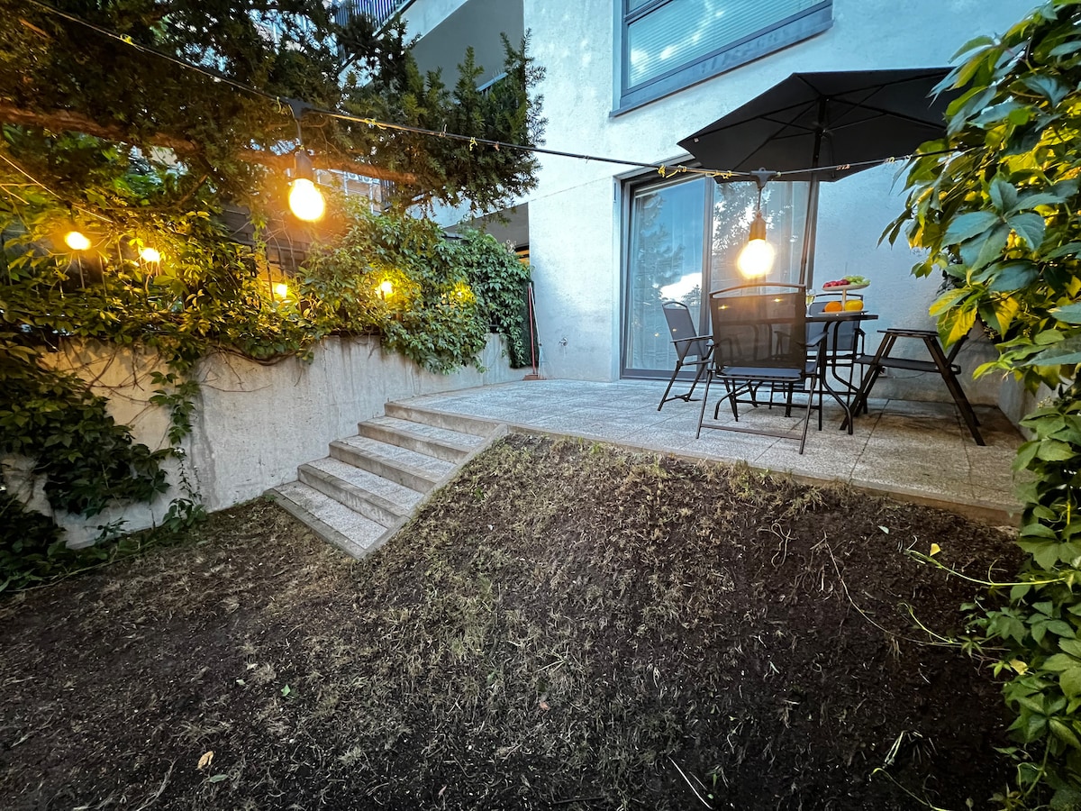 Le invitamos a un apartamento moderno y totalmente equipado con un jardín, situado en Mokotów, en el corazón del distrito de negocios. El apartamento ofrece una sala de estar con cocina y baño privado. Los huéspedes disponen de conexión Wi-Fi gratuita y un paquete de programas de televisión. Para nuestros huéspedes, hemos proporcionado una cómoda plaza de aparcamiento en el aparcamiento subterráneo. Es posible utilizar la zona de relajación: gimnasio, sala de fitness, sauna, billar, terraza con vistas. ¡Le deseamos una estancia agradable!