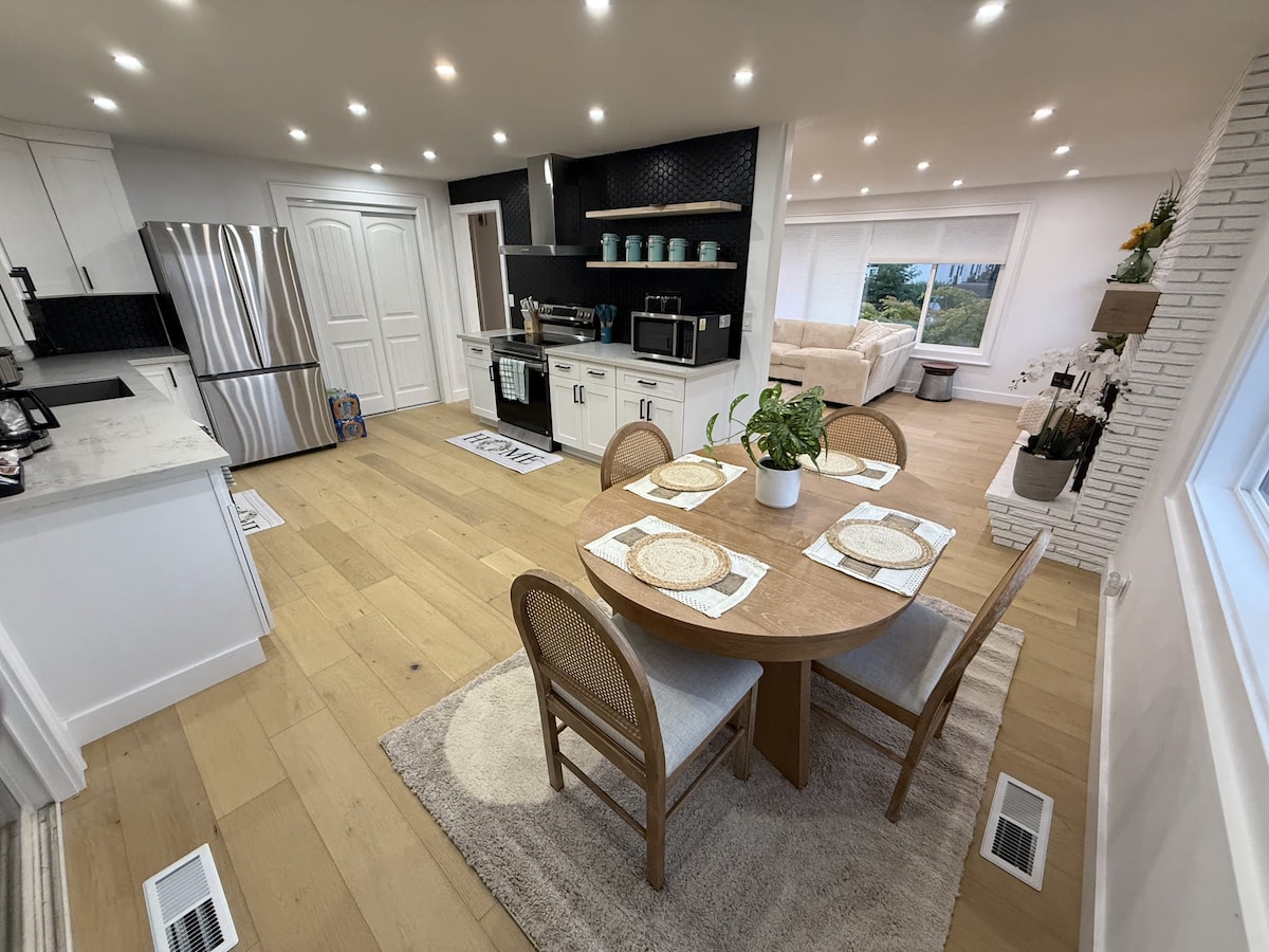 Relájate y desconecta en este alojamiento tranquilo y elegante. Esta casa de campo recién reformada cuenta con acogedoras salas de estar, una gran cocina y superficies impecables. Disfruta de la tranquila ubicación que está convenientemente ubicada cerca de tiendas, restaurantes, instalaciones médicas y transporte público. El gran terreno de la esquina ofrece un amplio espacio entre las casas vecinas. Disfruta de la cafetería, wifi y dispositivos de transmisión Roku.