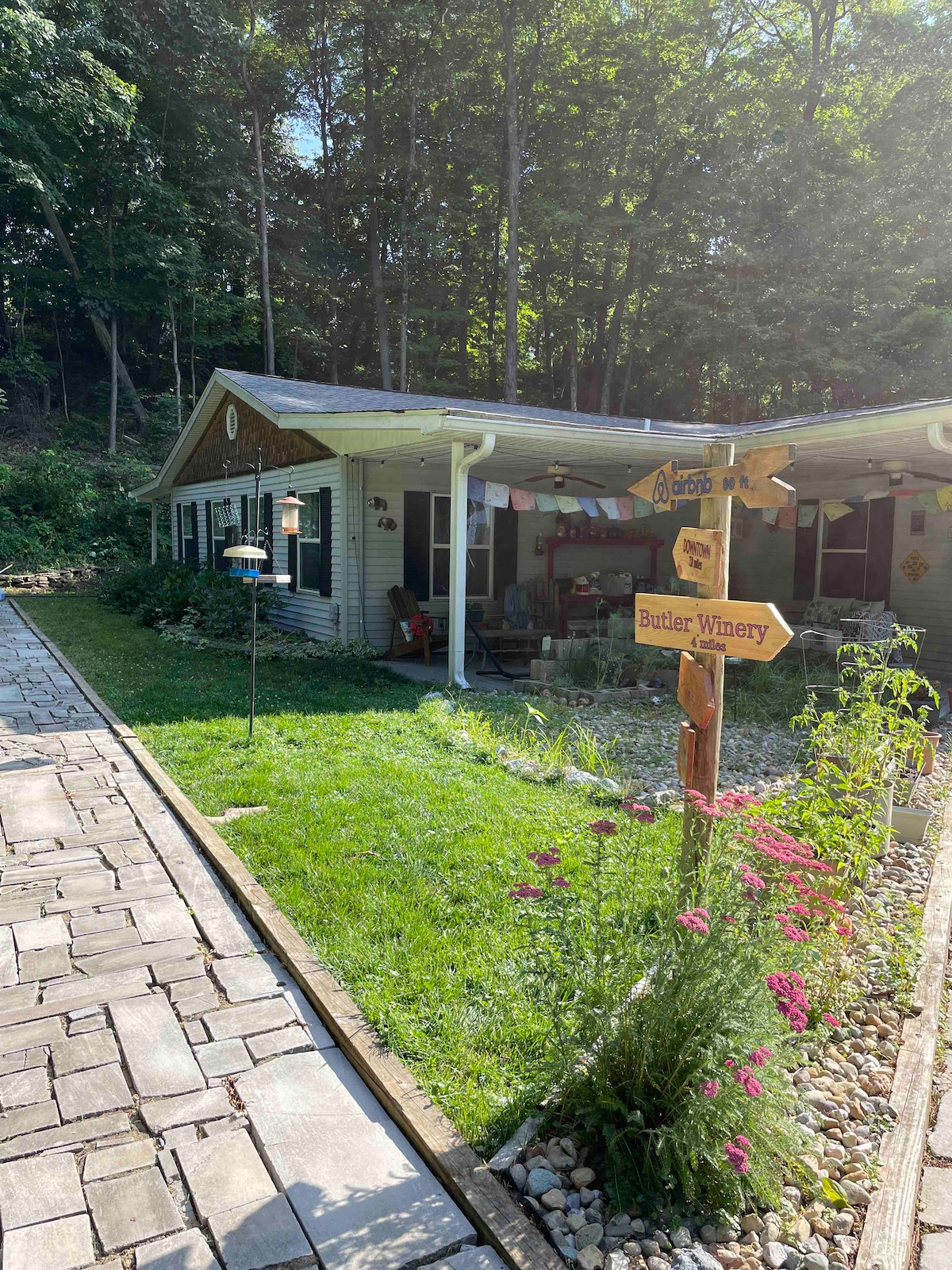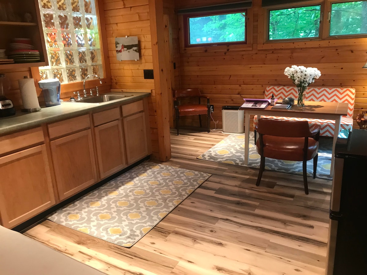 Hideaway Hollow is a cozy, private guest suite in Bloomington, Indiana. Located on the north side, it is just fifteen minutes from the heart of downtown Bloomington, IU stadium, and an hour from Indianapolis. Nestled in the forest, the suite offers a covered porch with a private entrance, a spacious living room, a kitchenette, and a master bedroom with a full bath. Suitable for up to four guests, come to enjoy the serenity of country living, the comforts of home, and easy access to the city.