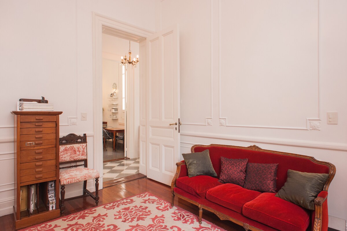Esta propiedad se limpia y sanitiza según protocolos Covid-19. Sensacional departamento, amplio, luminoso, silencioso, restaurado con estilo, en lo mejor del centro histórico de Buenos Aires: a 50 metros de la feria de San Telmo y cinco minutos a pie de Plaza de Mayo, Casa Rosada, calle Florida y Puerto Madero. - Cuarto principal con cama KING size. - Sala y cuarto principal con Aire Acondicionado - Espectacular baño con bañera doble. Huéspedes LGBT bienvenidos ★CONTACTA AL ANFITRIÓN★