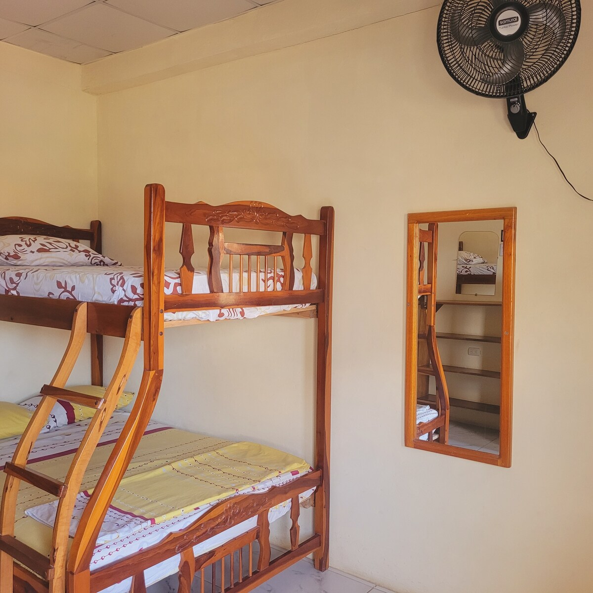Disfruta de una estancia cómoda en esta habitación de un hostal pequeño, ideal para viajeros que buscan comodidad y practicidad. Cuenta con dos literas para 4 personas, Él baño es privado, con ducha, toallas suaves y artículos básicos de higiene. La habitación también dispone de ventilador y acceso a Wi-Fi gratuito. Ubicada en una zona céntrica, tienes fácil acceso a restaurantes, tiendas. ¡Te esperamos para brindarte una experiencia relajante y sencilla durante tu viaje!