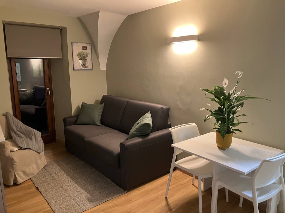 Un espacio sencillo y romántico, una habitación sin florituras con cocina americana y una pequeña terraza con vistas al río: desde aquí se puede ver un pequeño puente de piedra... y el sonido del agua que fluye. El alojamiento es una gran bóveda: toda la casa ha sido restaurada con materiales naturales, cal y barnices hechos con harina y aceite de lino. Para los meses de invierno hay una estufa de leña que los huéspedes pueden gestionar de forma independiente. Se proporciona leña para la estancia.