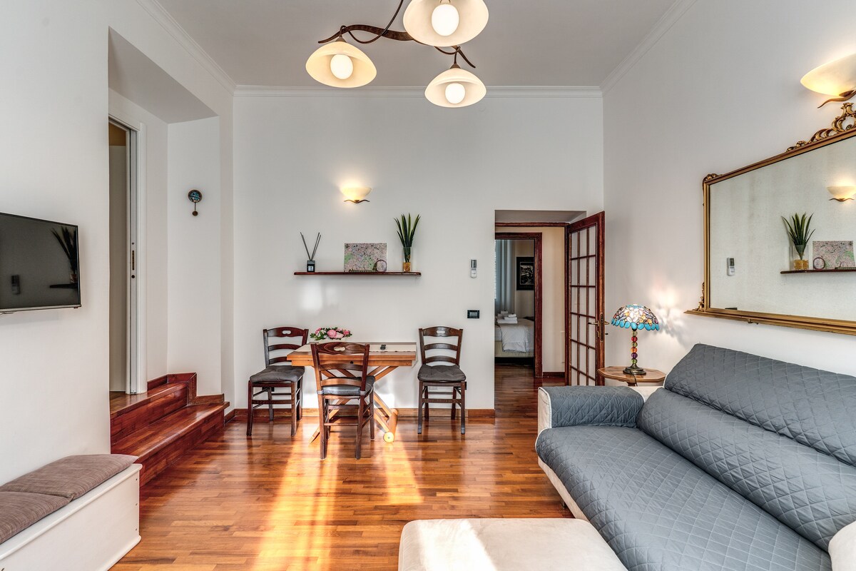 Alojamiento entero en una ubicación céntrica y tranquila. Luminoso tercer piso con ascensor de un edificio típico de los años 20. Recientemente renovado, el apartamento está muy bien comunicado con el centro histórico, el Trastévere y el aeropuerto; equipado con WIFI rápido, aire acondicionado, cocina abierta. El apartamento está equipado con una máquina de café expreso Bialetti, tostadora, hervidor de agua, lavadora, secador de pelo y plancha. Llegada autónoma posible. Ideal para parejas o una pequeña familia con un niño.