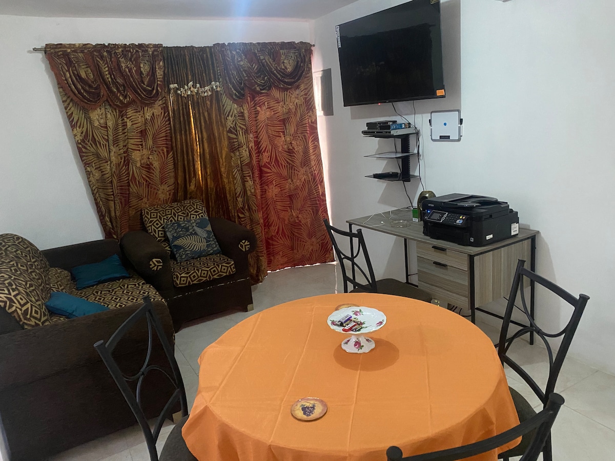 Nombre - AFLUENCIA Este impresionante apartamento de lujo de 1 dormitorio está diseñado para la comodidad y la elegancia, ubicado a 15 minutos del Aeropuerto Internacional de Sangster (Aeropuerto de Montego Bay), con fácil acceso a los mejores restaurantes, tiendas y entretenimiento. El complejo cuenta con un total de 5 unidades, que ofrecen una privacidad adecuada a nuestros huéspedes. Ubicado a solo 7 minutos del centro comercial Fairview y a 10 minutos del centro de Montego Bay y del popular Hipstrip. La playa también está a 10 minutos de tu estancia.