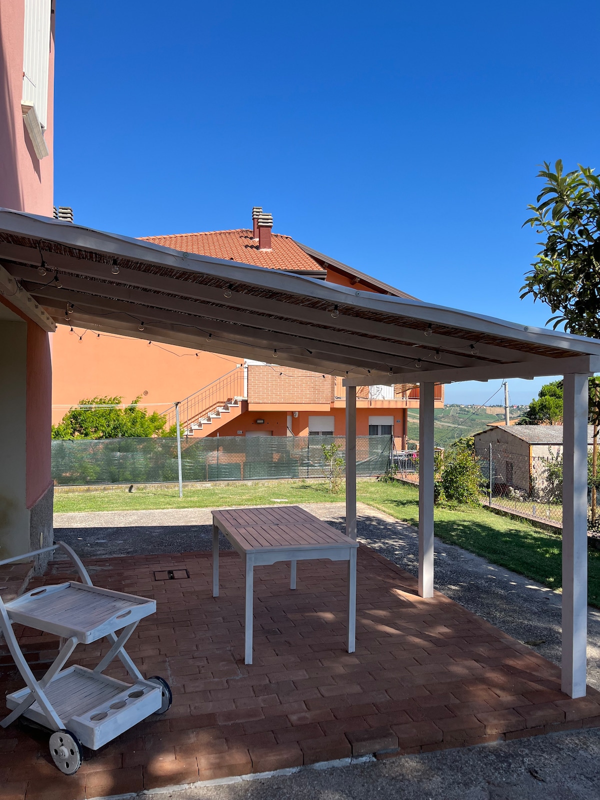 El apartamento está rodeado de vegetación con una gran terraza y un hidromasaje climatizado con vistas a las colinas de Marche. El alquiler no tiene espacios compartidos y está equipado con estacionamiento privado y un gran jardín en la planta baja. Cuando llegues, encontrarás sábanas y toallas limpias, en la cocina hay platos y platos para cocinar. En la terraza hay un hongo para calentar, evocador para bañarse en el jacuzzi incluso en invierno.