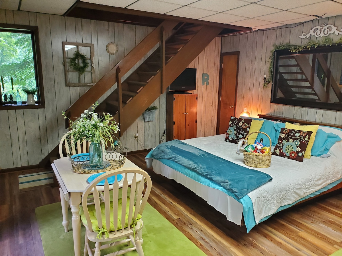 Casa de campo con un dormitorio con cama tamaño king, baño completo, cocina totalmente amueblada con estufa, nevera, lavavajillas, microondas, platos, ollas y sartenes, etc. Sala de estar con sofá cama tamaño queen y TV de pantalla plana. Enorme terraza (450 pies cuadrados) con vistas a Ellett Valley, aproximadamente a 3 millas de Blacksburg. Prohibido fumar. Se admiten gatos y perros. La casa de campo y el loft se pueden alquilar como una combinación o por separado, ya que están en la misma unidad, pero tienen entradas separadas. ¡NO se admiten perros que ladren!
