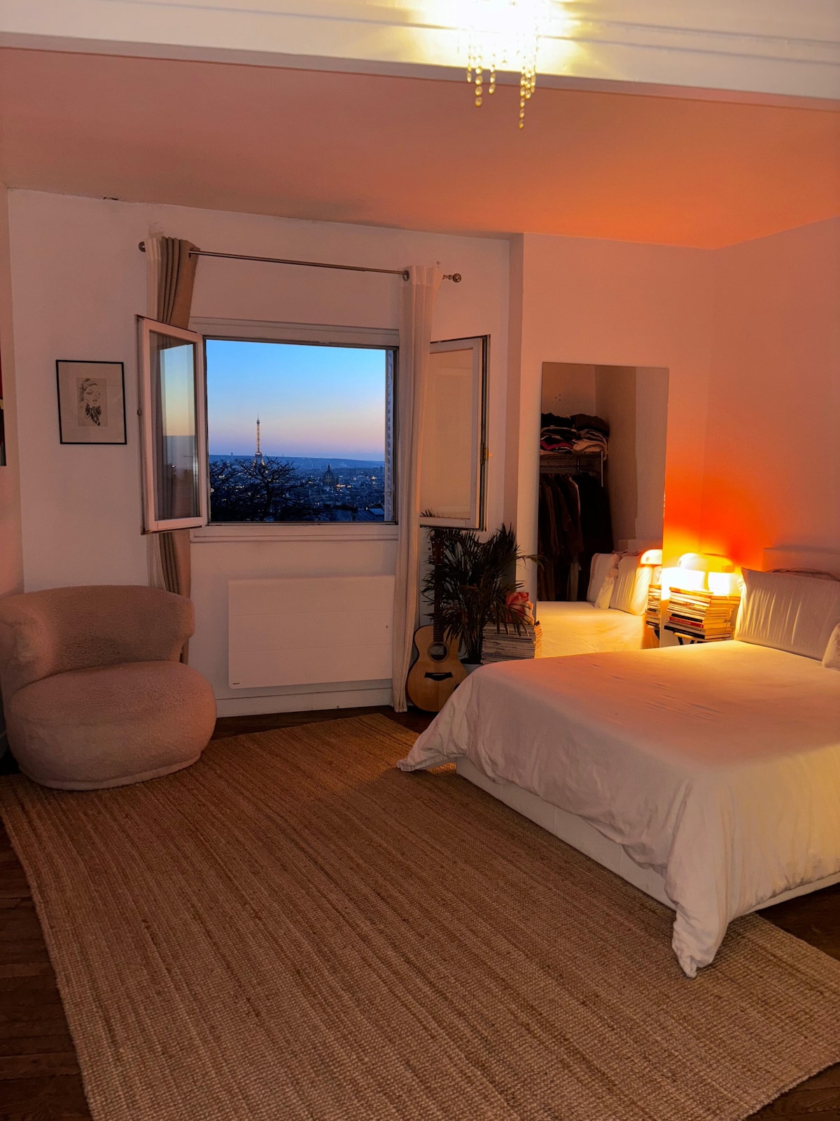 Bienvenido a nuestro apartamento típicamente parisino de 35 m2 , situado en Montmartre, en el corazón del barrio de Abbesses y con una magnífica vista de la Torre Eiffel. Somos artistas y le ofrecemos alojarse con nosotros, en una decoración original, cálida y única que hemos diseñado y realizado en 2024, y en el que se sentirá, esperamos que se sienta como en casa. El apartamento está situado en el cuarto piso sin ascensor.