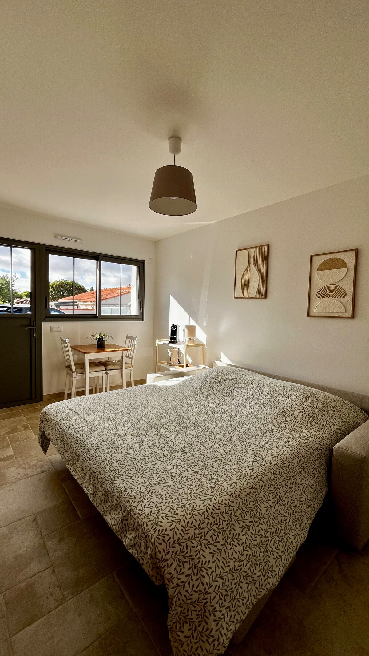 Estudio nuevo en una zona muy tranquila cerca de La Rochelle. Con una ubicación ideal alrededor de varios lugares de interés en automóvil: A 15 minutos del puente de la isla de Ré A 10 km del puerto viejo A 20 minutos de la localidad costera de Chatelaillon Plage y cerca del pantano de Poitevin, Fouras y la isla de Oléron... equipado con cafetera, tostadora, microondas Se proporcionan sábanas y toallas.