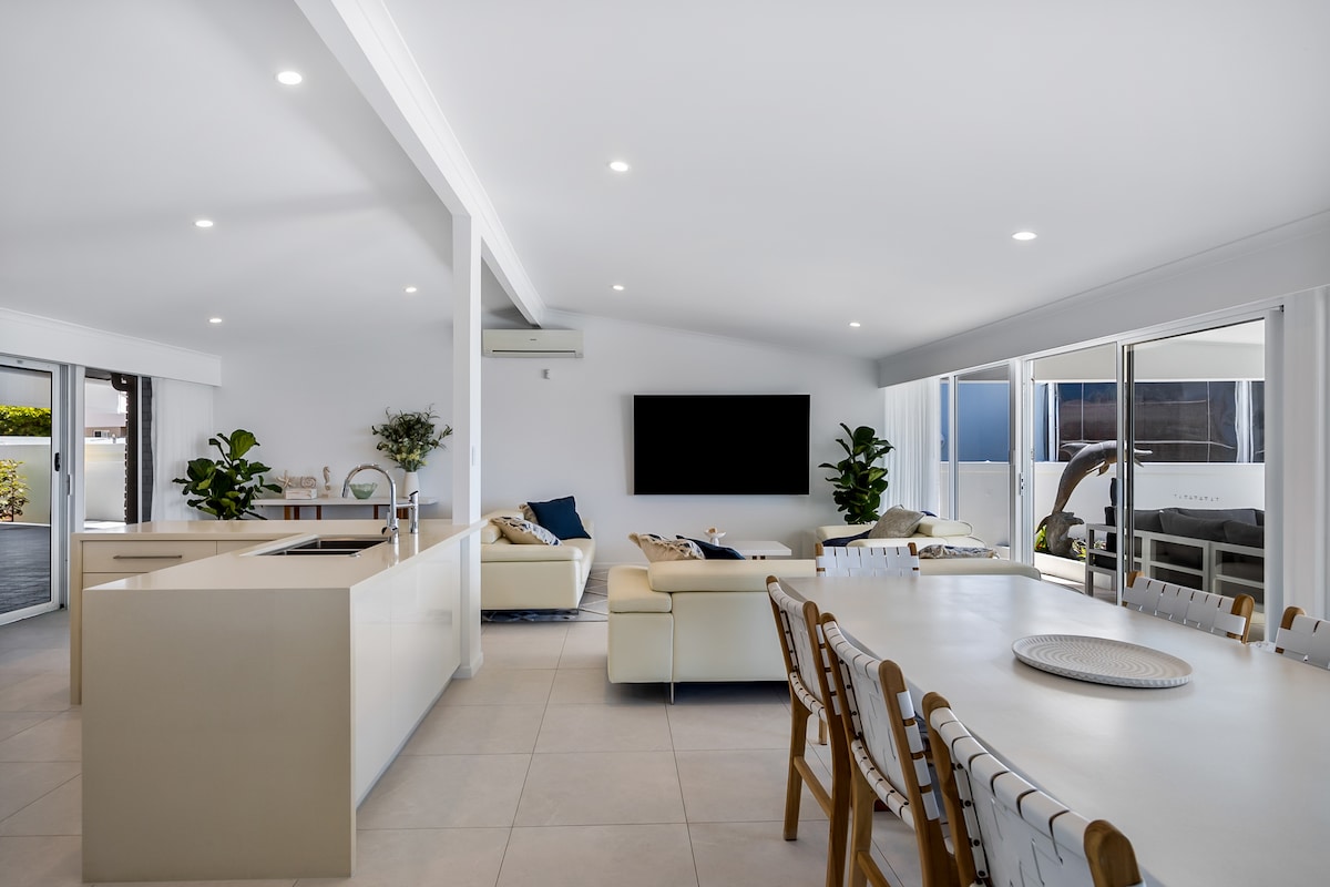 ¡Te damos la bienvenida a nuestro paraíso vacacional! Relájate y desconecta en este luminoso y espacioso apartamento con maravillosas vistas al agua desde la sala de estar, el dormitorio, la cocina o el balcón. Date un chapuzón en la hermosa piscina, practica kayak desde tu playa privada o da un paseo hasta los numerosos cafés y restaurantes a lo largo de la explanada de Mooloolaba. La unidad también ofrece aire acondicionado por conductos, ventiladores de techo, cocina totalmente equipada, lujosa cama tamaño king, cafetera Nespresso, lavandería interna, barbacoa Weber, 2 kayaks y mucho más.