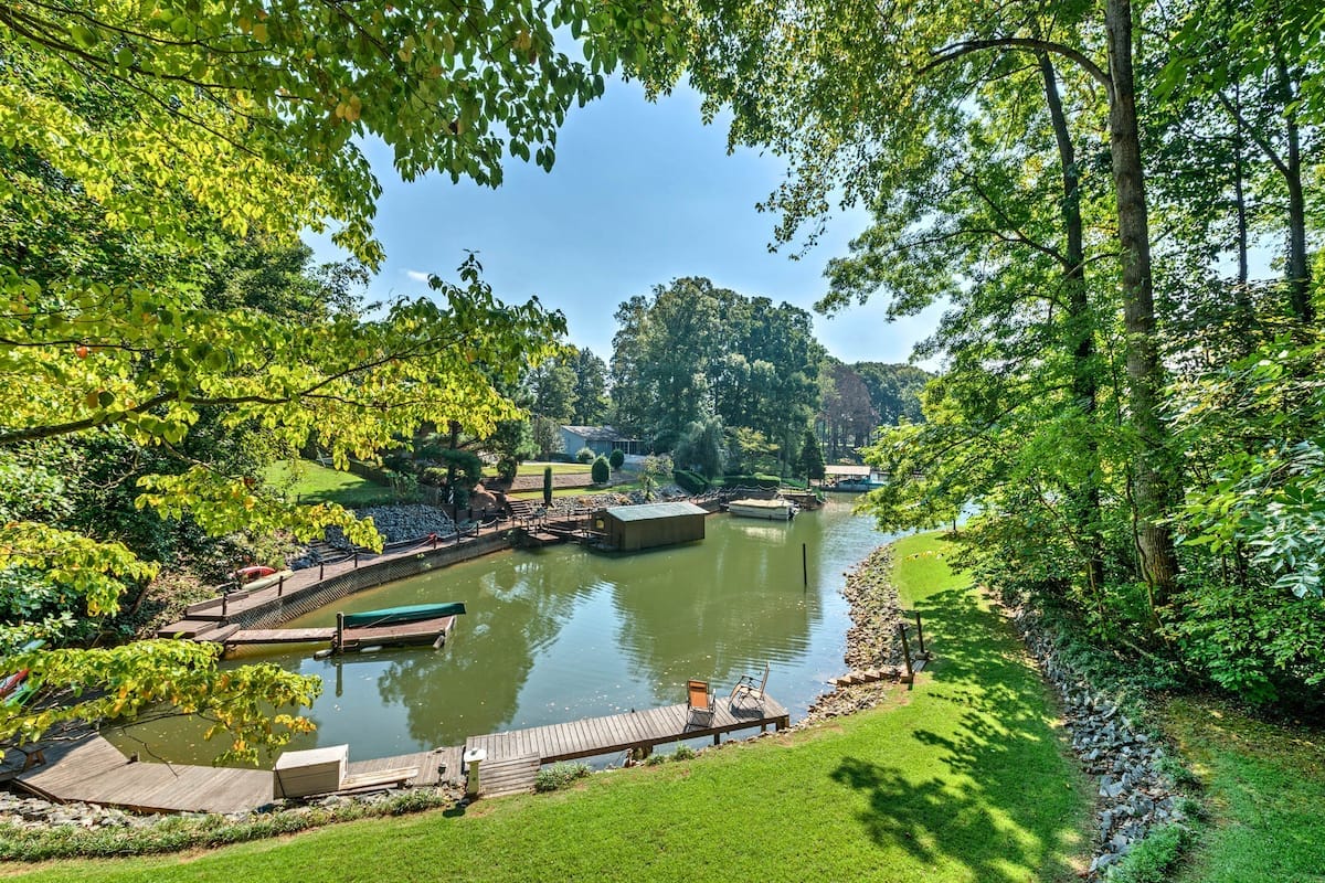 Esta encantadora propiedad frente al lago no se llama Cabin on the Lake por casualidad. Situada a solo 10 pies del agua, esta acogedora casa cuenta con una vista inigualable del lago Norman. La cabaña incluye un espacioso muelle con espacio para hasta 3 barcos, suficiente para albergar a amigos y familiares para una noche de cócteles y fuegos artificiales. Esta es una escapada de 2 camas y 1 baño para los entusiastas de los deportes acuáticos que buscan una escapada junto al lago o para el ávido pescador que busca su próxima historia de un pez grande. *SE ADMITEN MASCOTAS*
