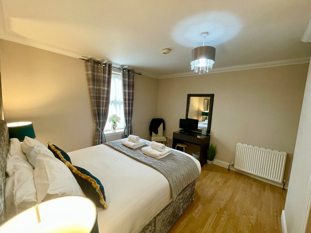 Este elegante alojamiento es perfecto para viajes en grupo y para personas que trabajan localmente. Cada habitación doble con baño tiene TV inteligente y puerta con cerradura. El wifi es FTP. La empresa te da la bienvenida, si tus fechas no están abiertas, ponte en contacto conmigo con tus solicitudes, ya que puedo ayudarte. La sala de estar/cocina de planta abierta es espaciosa con placa de inducción, horno, nevera/congelador, lavavajillas y lavadora. El apartamento está en un lugar perfecto para pubs, restaurantes, está cerca de las estaciones de autobús y tren y tiene abundante estacionamiento gratuito durante la noche cerca.