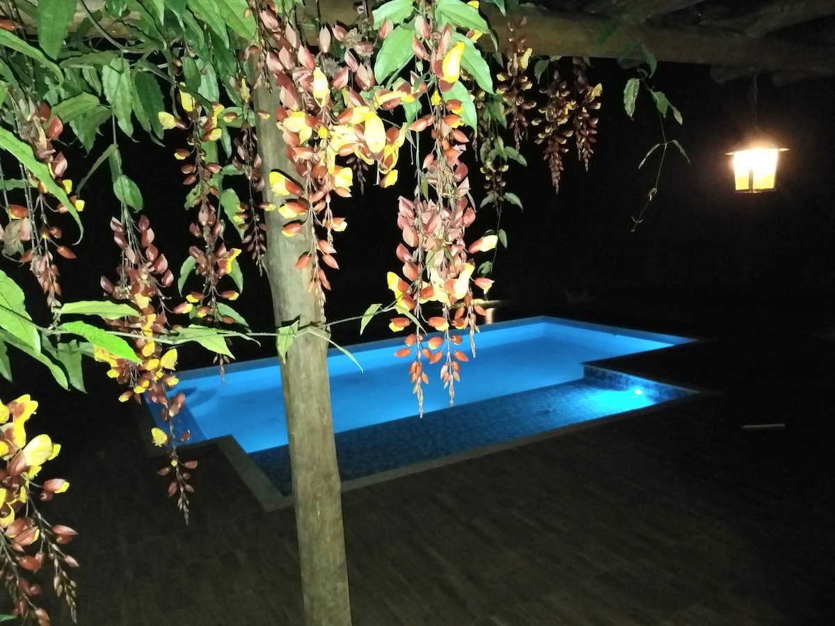 **** ¡Lee las descripciones de la casa ****! Nuestra granja es un espacio súper acogedor para que escapes de la rutina de la vida cotidiana, descanses con tu familia, leas, te reúnas con amigos y tengas mucho contacto con la naturaleza. ¡Estamos DENTRO de un condominio residencial con 9 CASAS MÁS! Hay 4000 metros de terreno. Si quieres paz, tranquilidad, escapar del bullicio y respirar aire fresco, ven a visitar nuestra casa. Nuestra zona gourmet/barbacoa es deliciosa.
