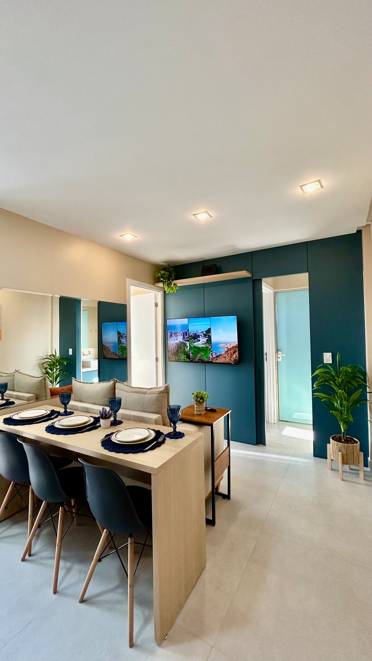 Apartamento nuevo y acogedor a pocos metros de Beverly Hills Beach, Itapuã, Vila Velha/ES. Apartamento completo, área de ocio en la azotea con piscina y sauna liberada para el uso de los huéspedes. El apartamento tiene una cocina completa, una sala de estar con televisión inteligente y un ventilador de techo, baño con ducha eléctrica, lavandería, habitación con aire acondicionado (split) y con televisión inteligente, un barrio tranquilo, excelente barrio.