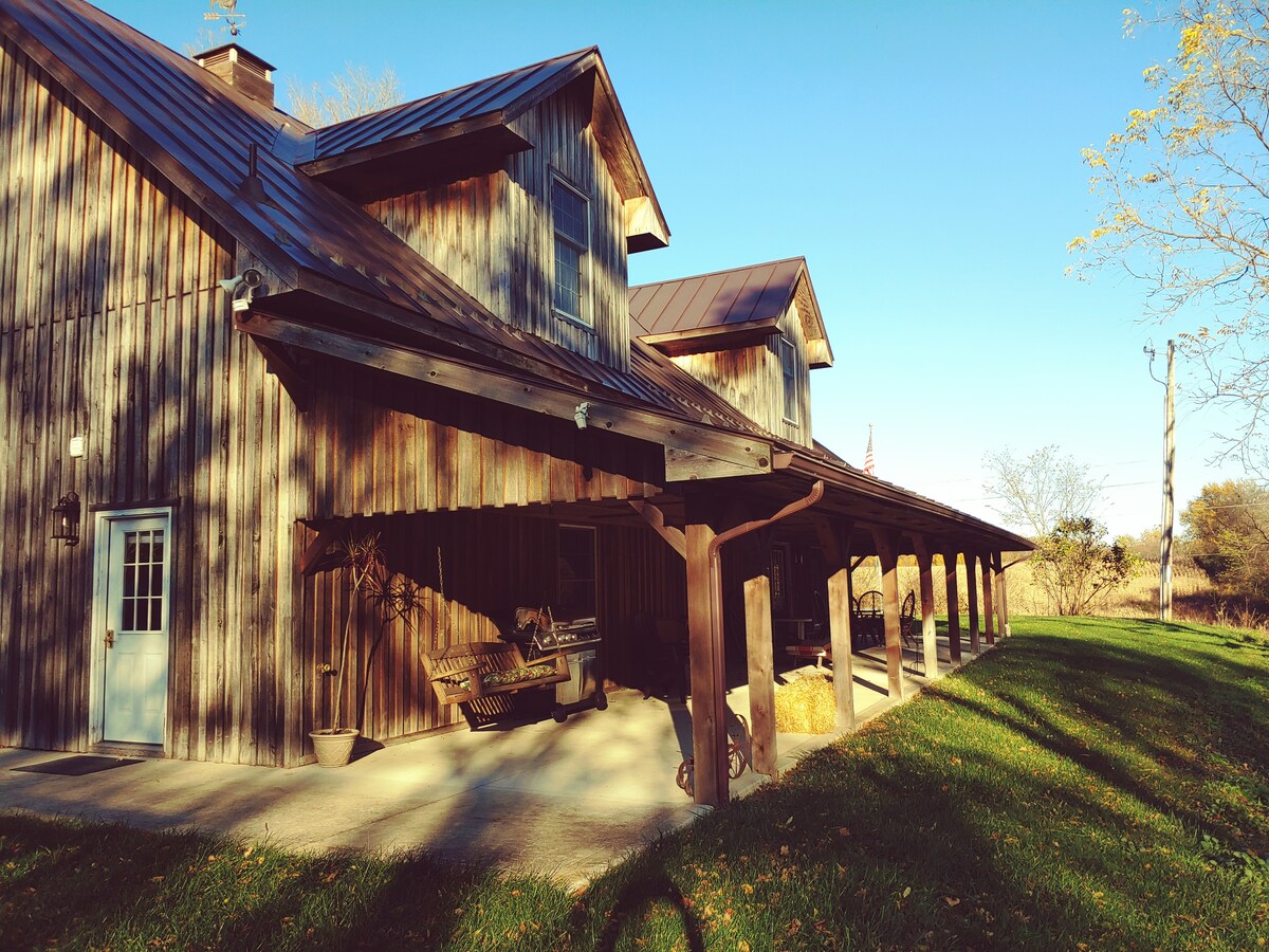 Escape to this beautifully restored old barn, now a cozy home full of rustic charm. Nestled on our working farm, this unique space offers the perfect blend of historic character and modern comfort. Enjoy the warm, welcoming atmosphere with exposed beams, wood accents, and a view of our animals. You’ll have all the amenities for your stay: a fully equipped kitchen, cozy living room, work area, comfortable bedroom and spacious deck to watch the animals and just relax.